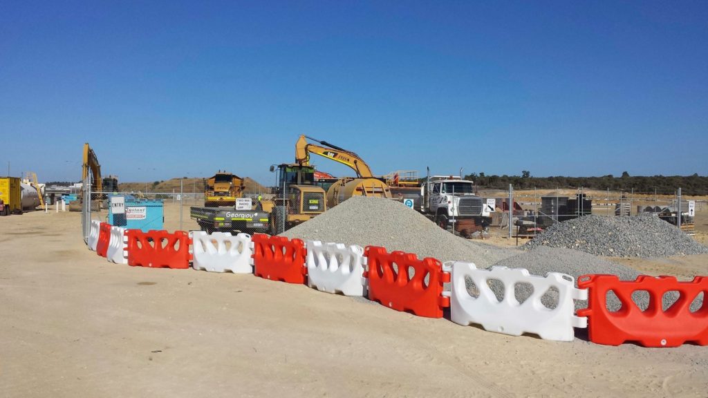 Examples of Eureka’s Hard Barricading, Temp Fencing and Water Filled Barriers being used onsite. Our range of Temp Fencing and Heavy Duty Barricades can be seen throughout Australia, on Civil, Construction and Mining sites. The simple assembly makes setting up exclusion zones and other restricted areas a breeze, and when not in use hard barricades can be stored away safely using our pole and leg stillage products.